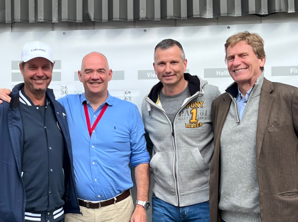 Mit dabei: Deutschlands Davis Cup Champion Marc-Kevin Goellner und Ex-Profi Patrick Baur. Die beiden sowie Coaches und Ex-Profis spielen jeweils mit einem Amateur aus dem Sponsoren- und Partnerkreis der Kirschbaum International. Anschließend Siegerehrung gegen 18.30 Uhr und Get-together. Zuschauer und Gäste sind bei freiem Eintritt herzlich willkommen!